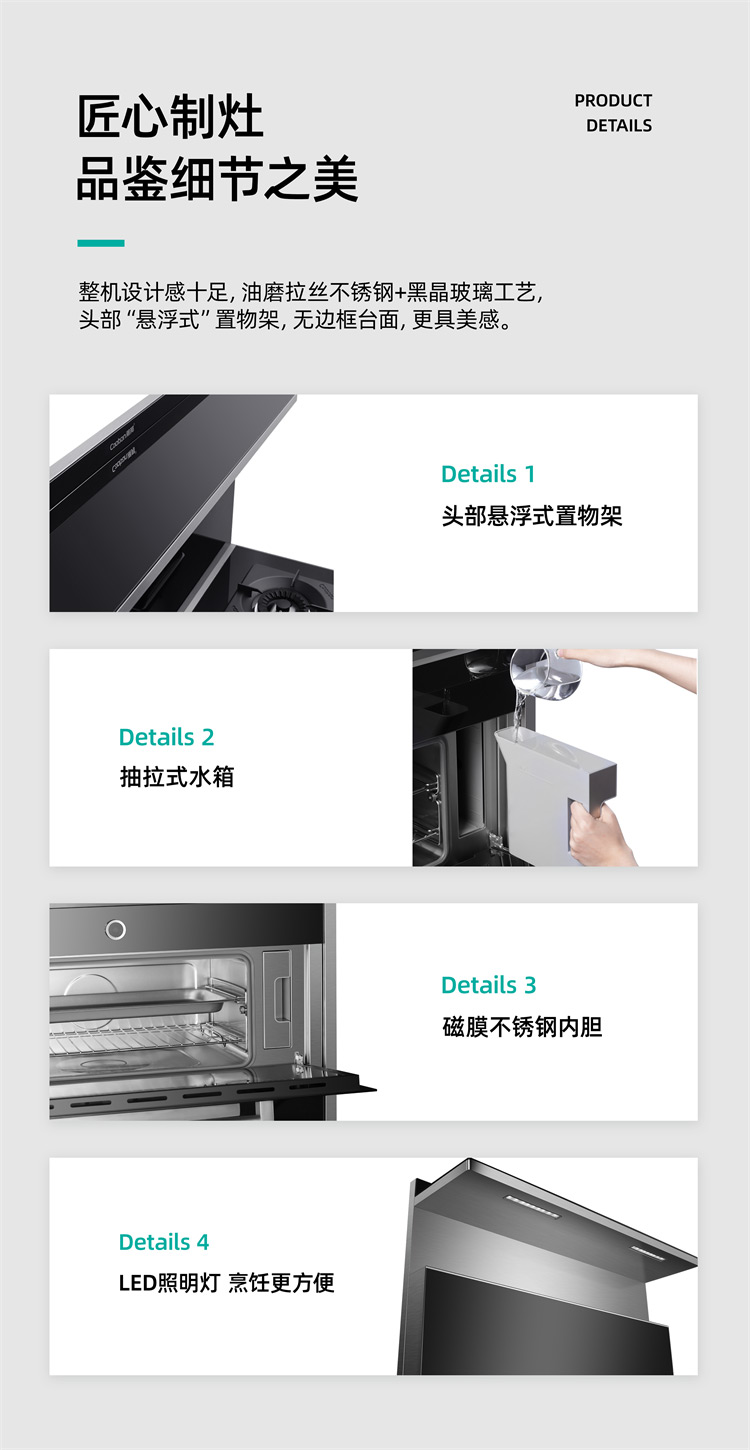 蒸烤分層集成灶,邊蒸邊烤,美味加倍,引領(lǐng)蒸烤分層新時代。