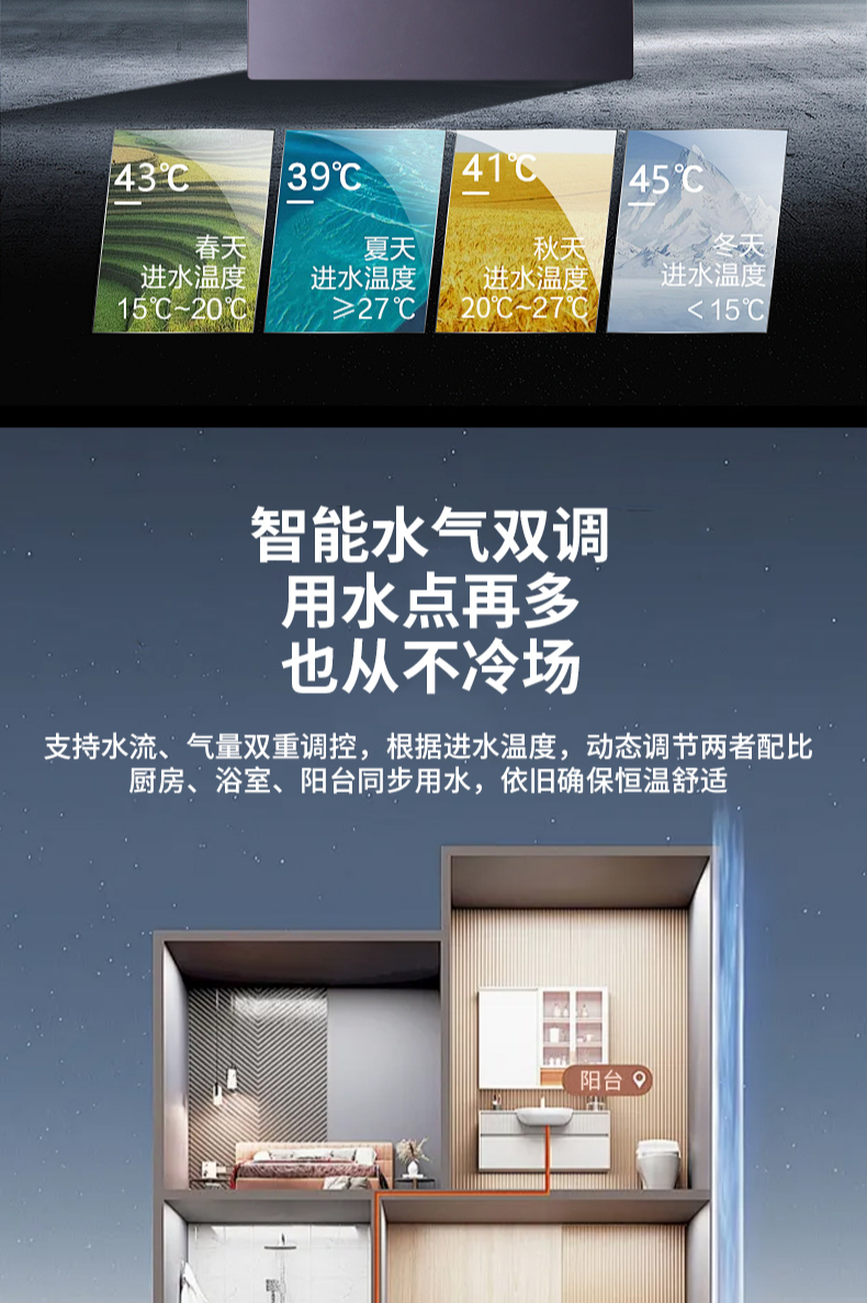 雙防凍型,智能比例控制,四季自動恒溫,低水壓啟動